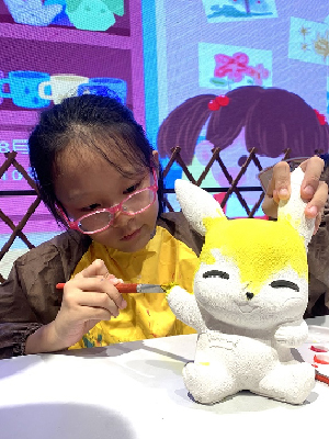 2022年8月20日下午,百大奥莱生活广场三楼商场联合异业“快乐宝贝”手工作坊开展“玩转色彩亲子DIY”,孩子们利用手中的笔刷,在那雪白无瑕的陶瓷人偶上涂鸦上五彩斑斓的色彩,解压的同时又增加了亲子间的互动。