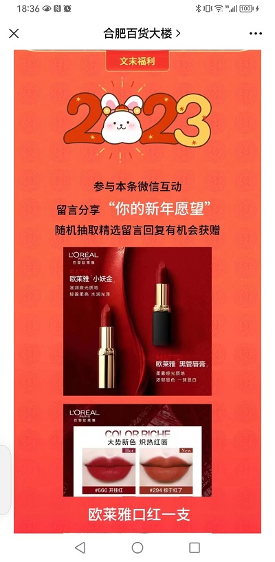 当时间的齿轮轻轻转动,当元旦的钟声准时敲响,2023年如约而至。合肥百货大楼在元旦当天,组织了在官方头条微信互动留言分享“您的新年愿望”,随机抽取10条精选留言赠送精美礼品一份。