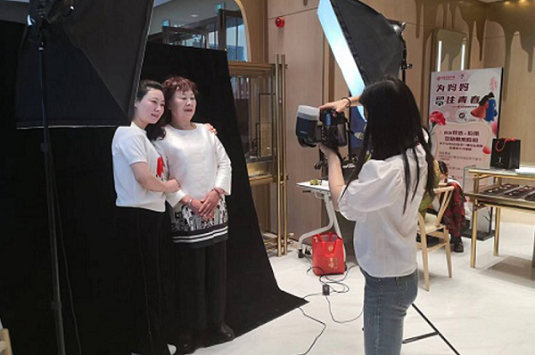 浓情五月,趁时光正好,百货大楼在一楼搭建拍摄区邀请专业的摄影师和化妆师到达现场,为前期通过百大悦购小程序邀约来的母亲们现场拍摄照片,也为母亲节当天来到百货大楼现场消费体验的母亲们提供一份惊喜,留下属于她们最美的回忆瞬间。