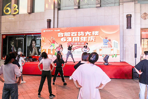 风雨六十三载,感恩共相伴。合肥百货大楼63周年庆——全城热恋 遇见更美好的自己”健身主题活动在百货大楼举办。来自全市的一百多位市民于8月4日-8月6日来到活动现场跟着健身教练一起跳操运动,元气满满!