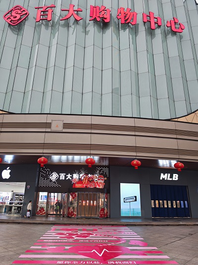 在2月14日情人节即将到来之际,滨湖百大门口出现了一条独特的爱情斑马线地贴,吸引众多顾客驻足拍照,成为商圈中一道亮丽的风景线。