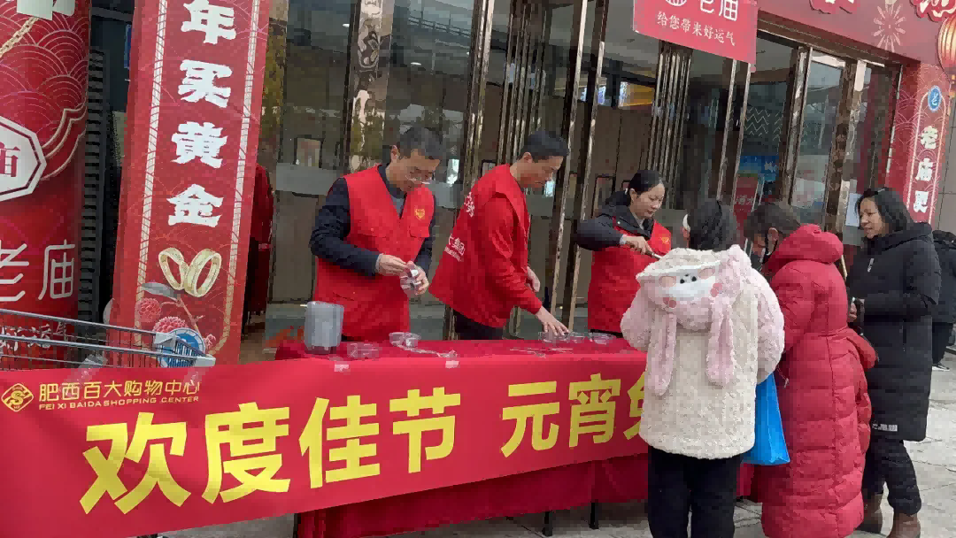 2025年2月12日肥西百大购物中心在门前广场举行“欢度佳节‘元宵免费吃”活动。活动现场,商场中庭摆放着数口大锅,工作人员将一颗颗饱满的元宵放入锅中,不一会儿,香甜的气息便弥漫开来。排队的市民们有序领取,大家脸上洋溢着幸福的笑容,“太暖心了,商场请吃元宵,让这个元宵节更有味道”。
