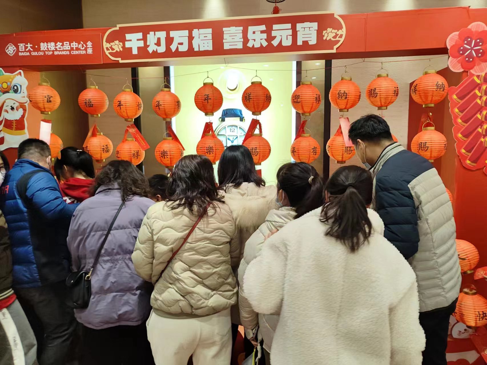 清辉映月阑,处处庆上元。又到了新年伊始的首个月圆之夜——正月十五元宵节,百大鼓楼名品中心金座开展赏花灯、猜灯谜活动,活动现场一片红红火火、热热闹闹,充满了浓浓的节日氛围,消费者们欢聚一堂喜乐闹元宵!