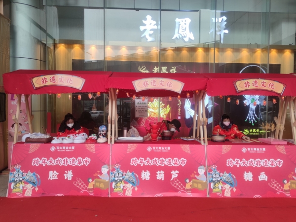 2023年元旦期间,百大商业大厦举办“跨年大戏”非遗文化潮流市集。在热闹喜庆的氛围中,上演精彩绝伦的文化盛宴,彰显中国非遗文化的独特魅力,陪伴周边居民欢度小长假。
