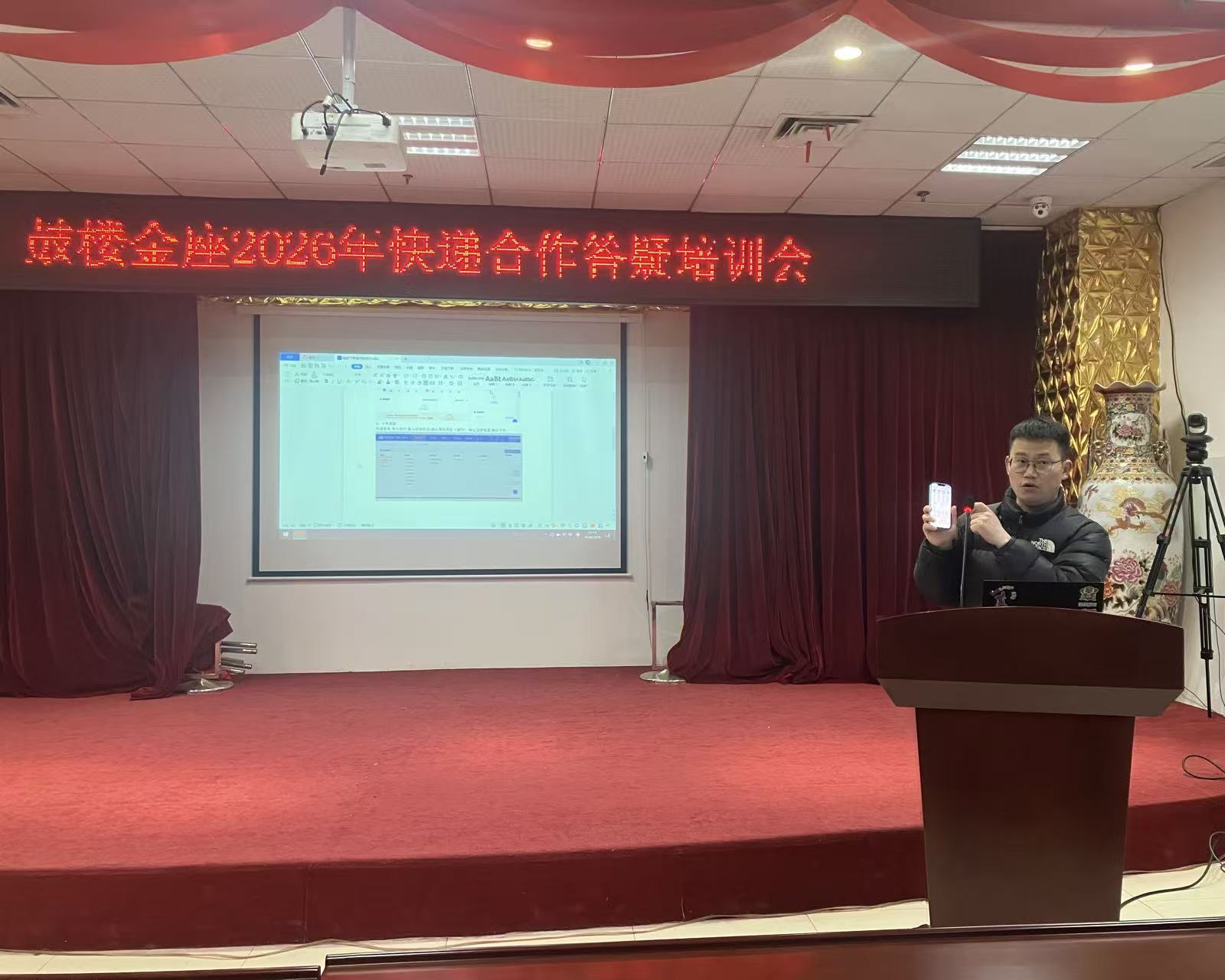 为进一步升级顾客服务体验,切实为员工提供寄件便利、降低寄件成本,保障京东快递寄件合作业务顺利落地,鼓楼金座于2026年3月20日下午组织开展京东快递业务合作答疑培训会,特别邀请京东快递相关负责人进行专业讲解,商场管理人员、各专厅店长集中参加了本次培训。