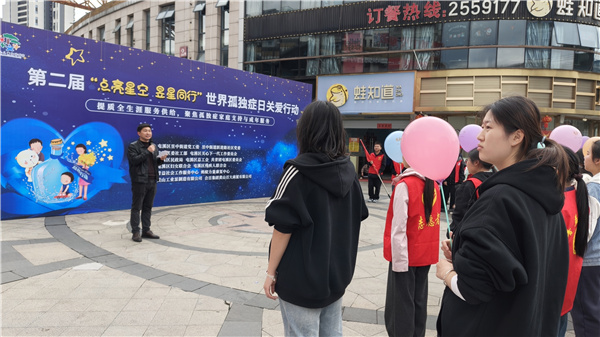 春和景明,惠风送暖。2026年4月2日是第19个世界孤独症日,以此为契机,由青益社工牵头联动,街道社区、妇联、团委、工会等多方力量共同参与的“点亮星空,昱星同行——共筑孤独症儿童成长蓝天”爱心主题活动在大润发广场开展,黄山百大作为爱心社会企业,积极响应号召,以实际行动践行企业社会责任,组织“徽骆驼”党员志愿者全程参与,为孤独症儿童及其家庭送上温暖与支持,助力共建儿童友好城市。