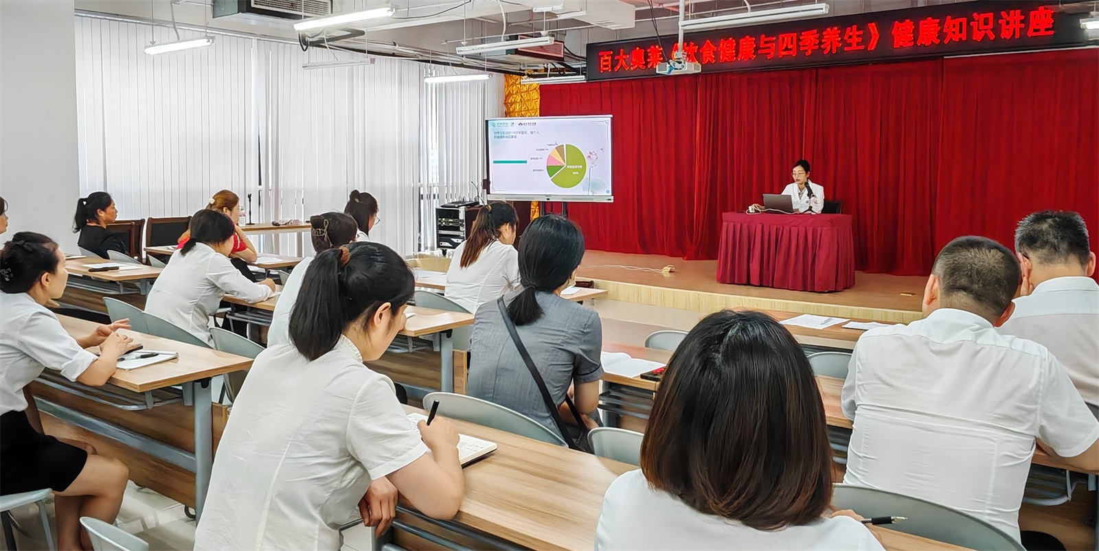 为积极传播健康理念,倡导文明健康的生活方式,2024年9月11日,百大奥莱邀请合肥慈铭体检中心客服部医生于爽带来“饮食健康与四季养生”知识讲座,共有40余名员工参与学习。
