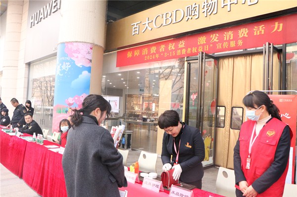 诚信铸就发展,信誉赢得市场。为迎接“3.15国际消费者权益日”,3月15日上午,百大CBD与安徽省服装质检所、三孝口市场监管所等职能单位于公司门前广场开展消费者现场咨询活动,百大CBD党支部围绕此次活动,以“礼在CBD”党建品牌“服务之礼”为切入点开展主题党日活动,公司党员、入党积极分子参加。