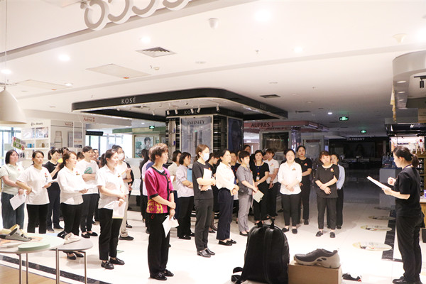 百大CBD为了更好的强化员工业务技能,提高员工服务水平,结合集团公司双创活动,组织系列技能赛展演,如百变衬衫秀、黄金“一手掂”、“华彩霓裳”等双创技能比拼。