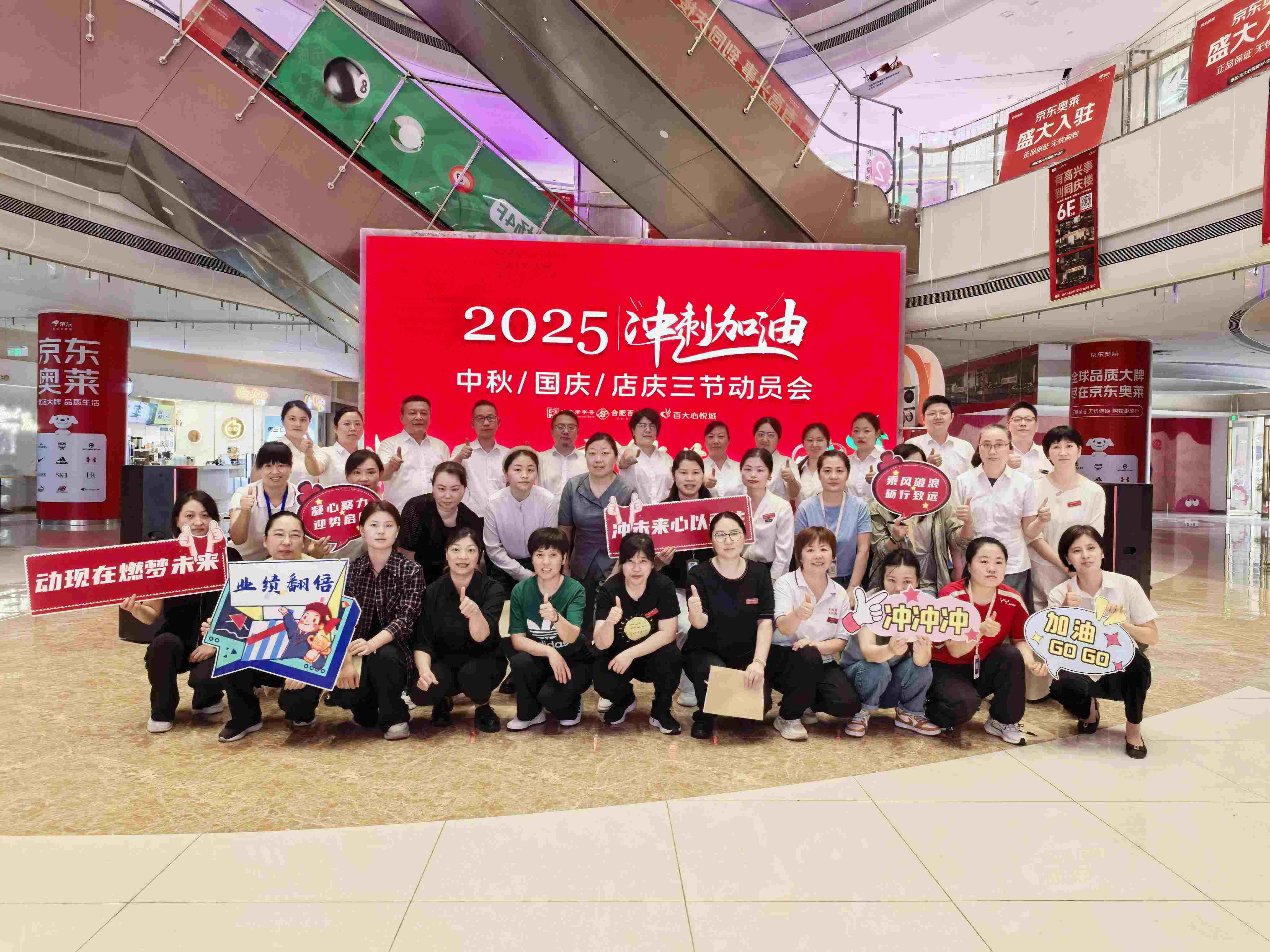为迎接年度重要营销节点,激发全体员工的工作热情与团队战斗力,2025年9月27日上午,百大心悦城组织召开“中秋/国庆/店庆”三节动员会。公司管理人员、各部门员工代表、品牌方促销员等共计50余人参加,共同为店庆月销售攻坚凝聚共识、提振士气。