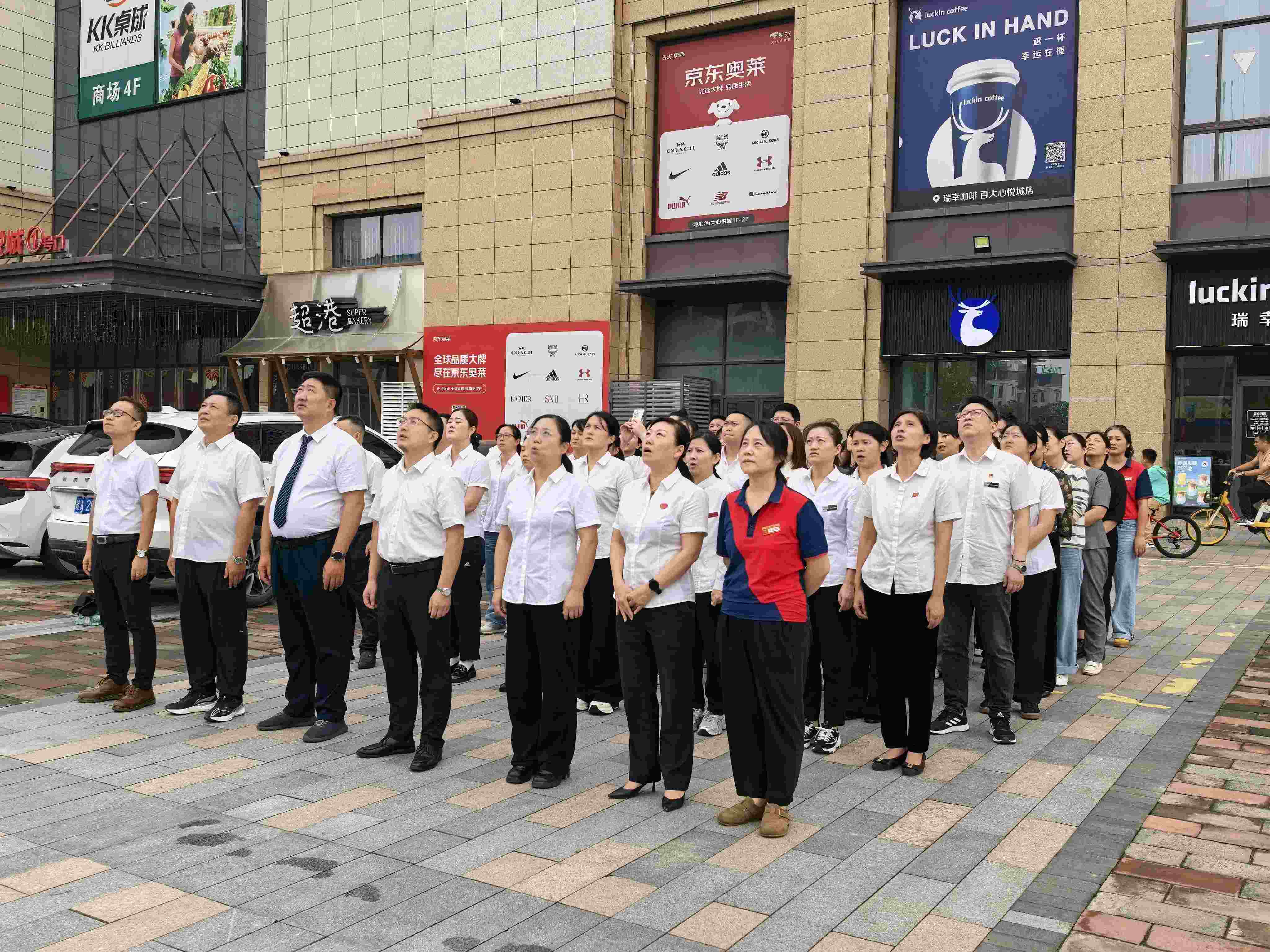 在中华人民共和国成立76周年之际,为弘扬爱国主义精神,激发员工使命担当,百大心悦城组织百货、家电、超市三大业态员工代表共计70余人,于10月1日上午在公司南广场隆重举行升国旗仪式。
