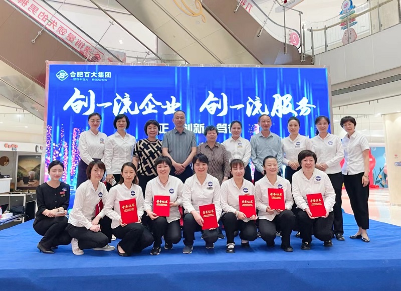5月17日下午,合肥百大集团“双创”收银服务比赛在百大心悦城隆重举办。安徽省财贸轻纺烟草工会副主席范明怀、合肥市财贸工会主席鲁成章、安徽省商业联合会顾问夏仁华、安徽省商业联合会副秘书长兼办公室主任魏红及集团工会主席裴文娟应邀出席比赛现场,集团财务总监岳晓阳现场宣读比赛规则。本次比赛共有16家百货兄弟门店,共计32名选手同台竞技、比学赶超。通过紧张激烈的角逐,由导购员张文君和收银员李燕组成的心悦城战队脱颖而出,荣获团队一等奖。