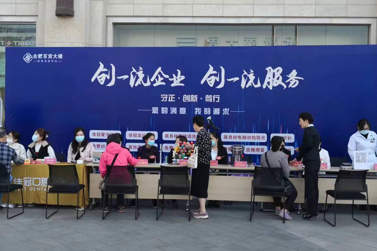 为纪念“3•15”国际消费者权益日,3月15日上午,合肥百货大楼“汤群劳模创新工作室”的成员参加了在百货大楼门前广场举办的“匠心服务 质在百大”服务活动,现场为广大消费者提供皮具护理、匠心织补、饰品编织、切片磨粉、血糖测量等12重服