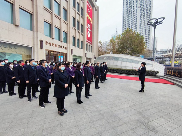 合肥百货大楼举行2023年元旦升旗仪式