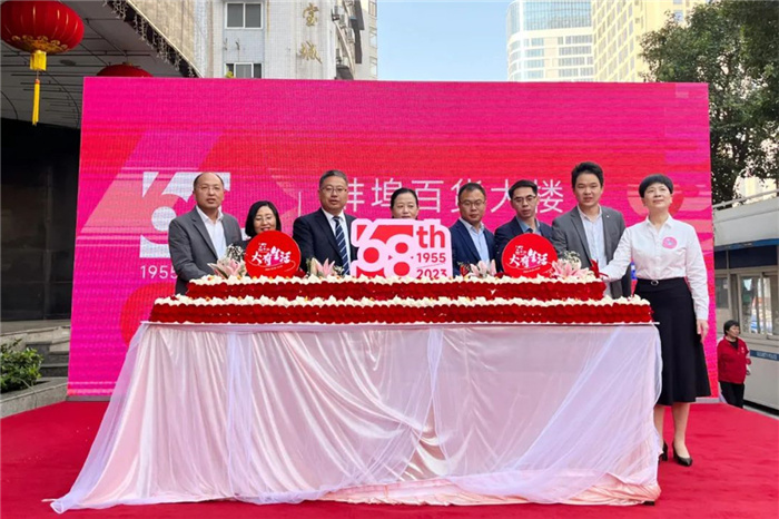 2023年10月26日,蚌埠百货大楼68周年庆典暨文创发布会在门前广场举行。蚌山区委书记桑延慧、蚌埠日报社党委书记孟儒存、蚌埠市博物馆馆长陈新宇等领导,蚌埠区域三业态班子成员及员工代表欢聚一堂,共同庆祝蚌埠百货大楼68周岁生日。