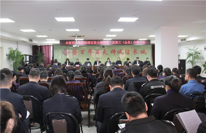 2023年11月17日,蚌埠百大四届二次职工代表大会正式召开。蚌埠百大领导班子、职工代表等75人参加大会,会议由公司党委委员、工会主席邵东侠主持。党委书记、董事长郭宏出席会议并讲话。