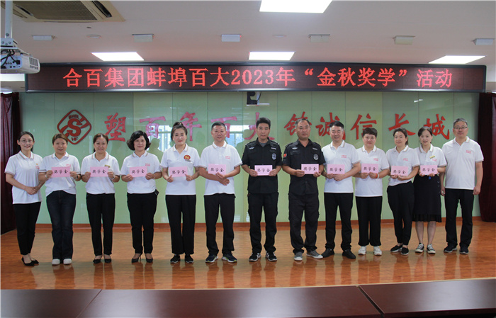 8月25日,恰逢集团64周年庆,蚌埠百大在九楼大会议室开展2023年度“金秋奖学”活动,蚌百四店14名考取大学的百大职工子女受到奖励,共享企业发展成果。
