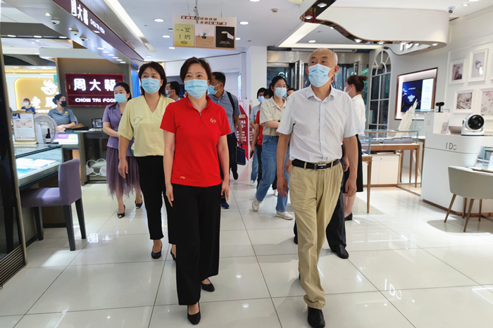 2022年9月14日,蚌埠市政协副主席周景飞,市政协常委、港澳台侨委主任曹玉华等领导莅临蚌埠百大调研指导工作。蚌埠百大总经理徐敏等领导班子成员陪同调研。