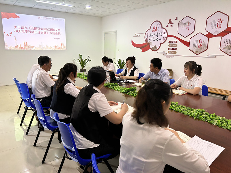 百大宝龙店召开传达《合肥百大集团消防安全60天攻坚行动工作方案》专题会议