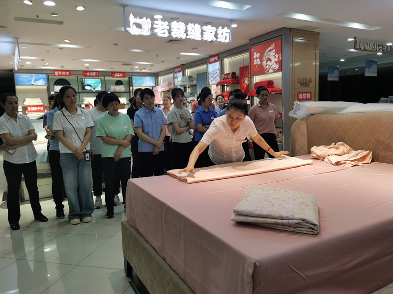 为深化“岗位练兵”,全面提升员工服务能力,百大购物中心宝龙店开展“床品艺术展示”岗位练兵活动。