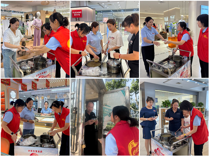 炎炎夏日送清凉 丝丝关怀入心田——百大购物中心宝龙店为员工发放防暑绿豆汤