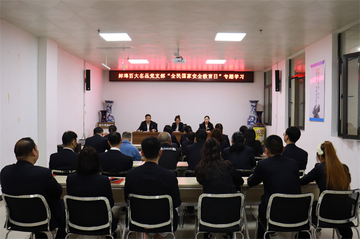 为深入践行国家安全观,贯彻落实习近平总书记关于加强国家安全教育的重要指示批示精神,4月13日,蚌百名品党支部组织召开“全民国家安全教育日”专题学习会议,公司党员、管理人员参加会议,党支部书记徐敏主持会议。