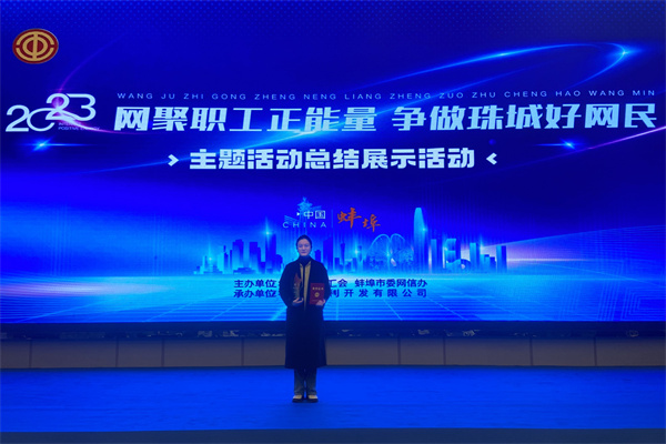 2023年11月29日,蚌埠市“网聚职工正能量 争做珠城好网民”主题活动作品征集评审结果出炉,蚌百名品中心李菊荣获全市“网聚职工正能量 争做珠城好网民”主题活动网络正能量诵读“三等奖”及优秀组织个人奖。