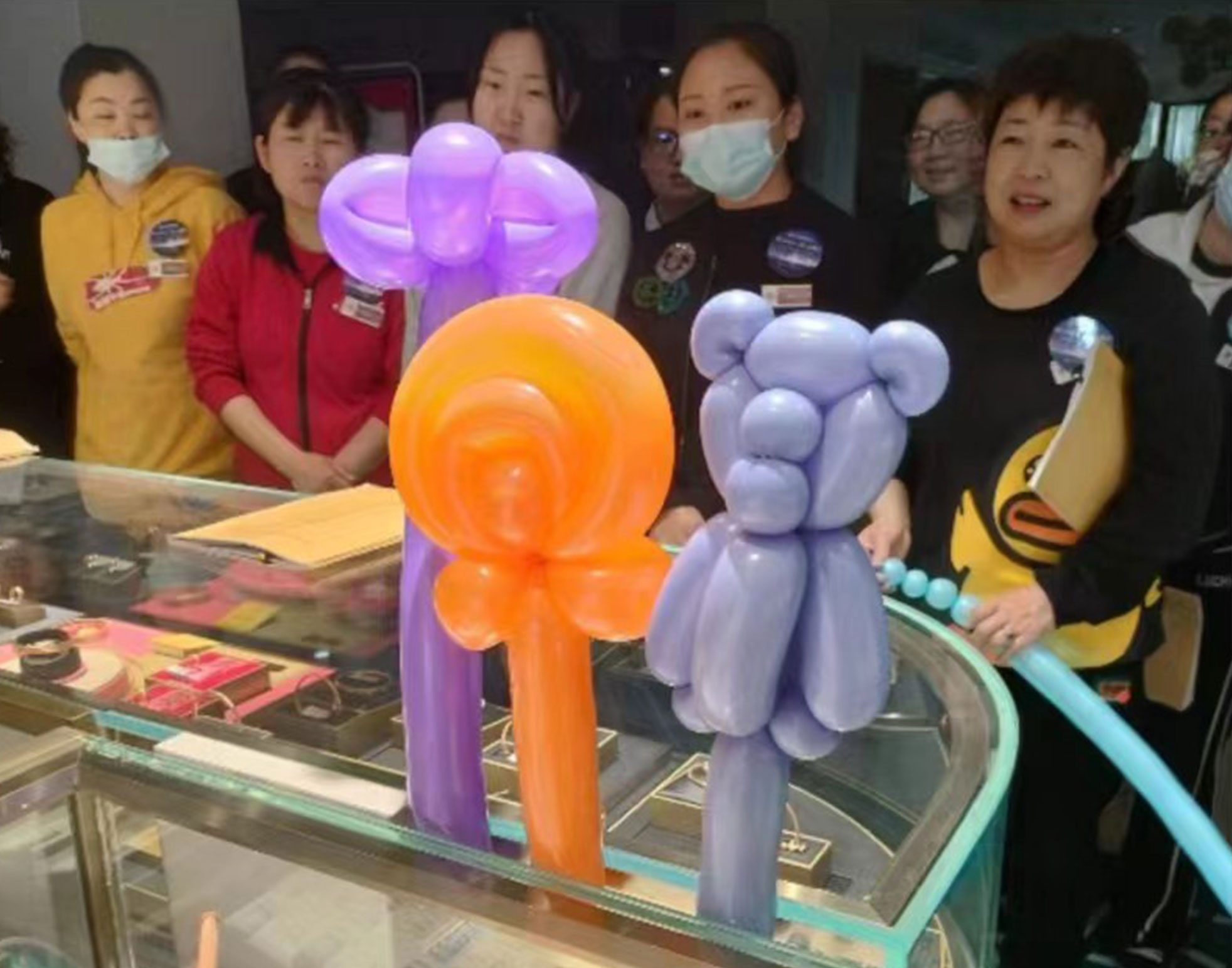 气球艺术是商场布置很重要的材料之一,不管大小造型都可以通过魔术般的双手进行呈现。为增强员工服务技巧,提高员工综合能力。商场于今日开展了“花式手工气球编织”主题培训。本次培训旨在将“花式手工气球编织”运用到实际工作之中,穿插更多的促销活动,热场活动,提高销售及客流。