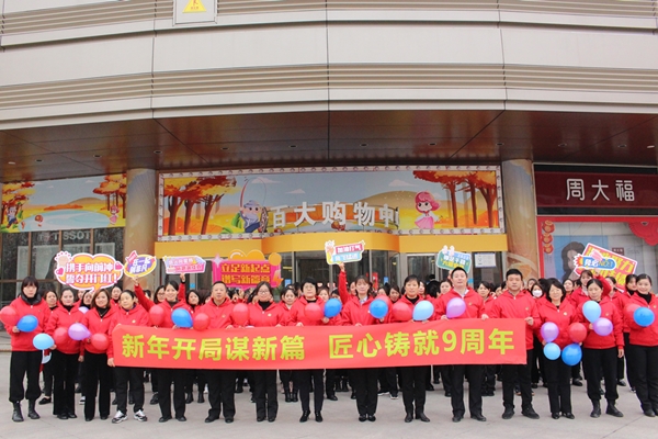 2023年1月16日,滨湖百大举行九周年庆典仪式。公司领导班子、管理人员及员工代表欢聚一堂共享此刻欢乐时光。