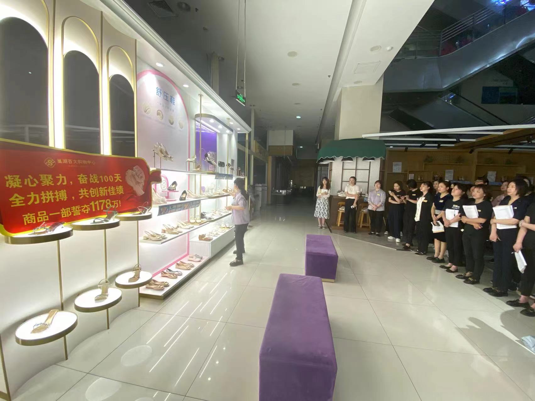 合肥百大集团第30届双创活动正如火如荼开展中,旨在围绕“拼业绩、拼线上、拼服务”的主题,为全面提升员工的销售技能、技巧,巢湖百大商品一部于5月30日利用早晨会时间邀请哈森店长开展品牌新品分享及鞋类搭配小课堂的活动。
