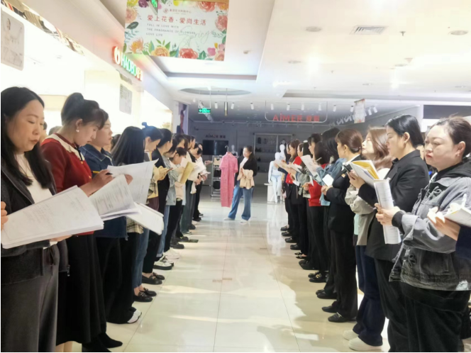 春意盎然,万物复苏,3月15日迎来合肥百大集团第30届双创竞赛活动,为以真诚和服务细节,提升现场服务水平,商品二部于4月1日安排渔牌女装春季新品货品分享,邀请店员在晨会上分享了商品特色、工艺等优势。