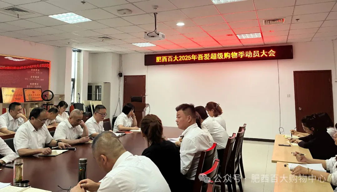 2025年4月28日下午,肥西百大购物中心召开2025年吾爱超级购物季动员大会。各商场部室现场表态,总经理黄顺凤部署四大重点方向,全力筹备这场消费盛宴。