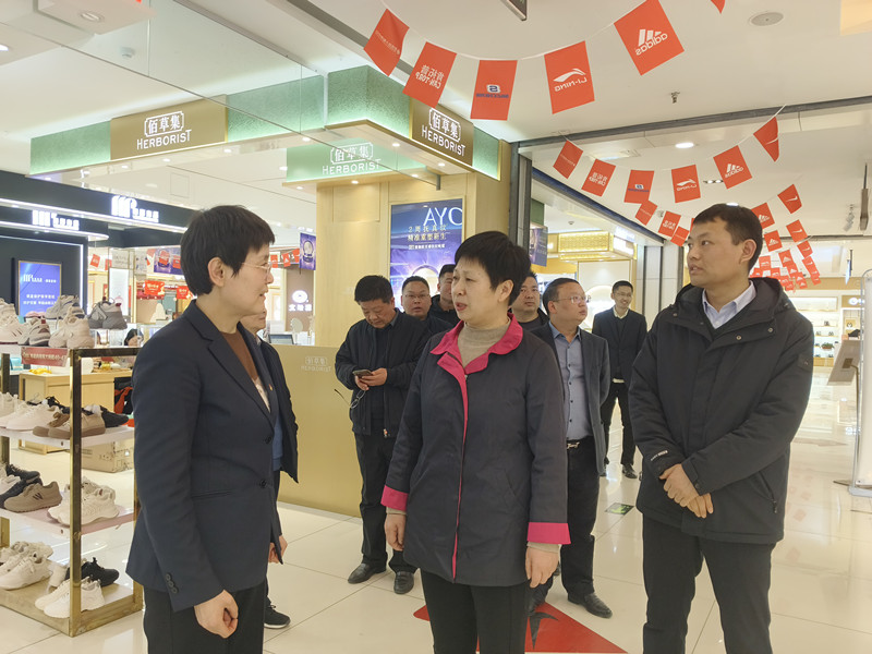 吴其珍一行深入各商场、超市、家电等经营场所,详细询问了肥西百大目前经营情况、调改进度等各项工作的开展情况,对肥西百大积极应对市场需求,创新多元服务表示肯定。