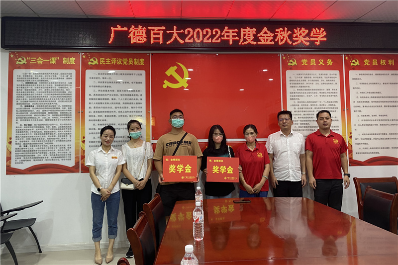 “十年苦读一朝决胜负换来笑逐颜开,数载艰辛六月定乾坤赢得似锦前程”。2022年8月30号,临开学之际,广德百大在党建活动室举办职工子女金秋奖学金活动,为百大合家福超市职工陈永清女儿毛润慈、百货商场员工林双燕儿子卢俊颁发奖学金。