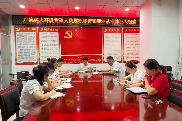 中秋、国庆将至,为提高党员干部的政治意识、责任意识、纪律意识和作风意识,以“清廉门店(集体)”创建工作为抓手,打好节前“预防针”,9月14日,广德百大开展履职尽责和廉洁从业情况集体检查与提醒谈话,会议由总经理童胜主持,公司领导班子、管理人员及党员参加。