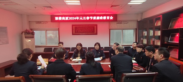 为进一步严明纪律规矩,增强干部职工廉洁过节意识,提前打好廉洁过节“预防针”,2024年1月10日,鼓楼商厦开展元旦春节前廉政警示教育会,公司党委及行政班子成员、支部书记、各部门负责人参加会议。