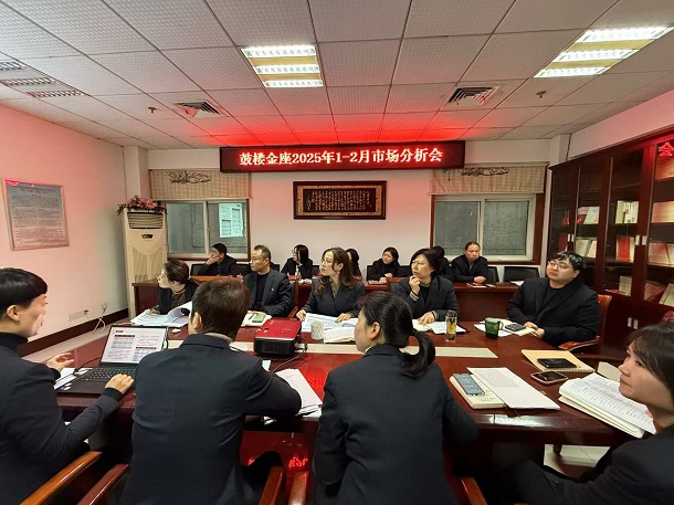 2025 年 3 月 5 日上午 8:30,百大鼓楼名品中心金座在六楼会议室举行了 “鼓楼金座 1-2 月份市场分析会”。此次会议聚焦 1-2 月经营重点工作落实情况,深度剖析活动亮点与不足,并对下一阶段工作作出详尽部署。公司领导班子成员、各部门负责人、经理助理及以上管理人员参会。