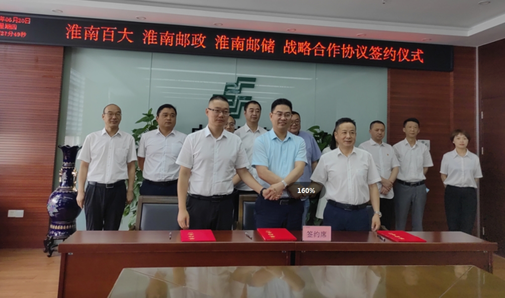 淮南百大与中国邮政淮南分公司、邮储银行淮南市分行 签署战略合作协议