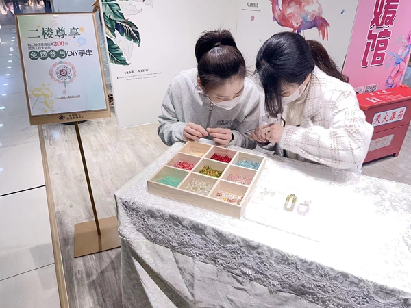春风送温暖,红豆寄相思。在这个春暖花开的日子里,我们迎来了合肥百大第29届双创百日大竞赛,“创一流企业,创一流服务”是我们双创的核心内容,淮南百大二楼女装商场为了带给顾客更好的体验感,提升顾客满意度。在少淑女装区提供了手工DIY手串区域。让更多的女性朋友在购物的同时也可以感受到手工DIY的乐趣。