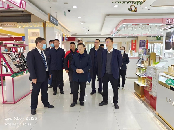 2023年3月19日上午,百大集团党委书记、董事长沈校根莅临淮南百大调研指导工作,集团党委委员、副总经理张同祥,集团党委委员、副总经理余綯,集团副总经理王皓,行政管理中心总监王勇等陪同。淮南百大总经理陶刚、公司班子成员及超市家电负责人参加调研座谈。
