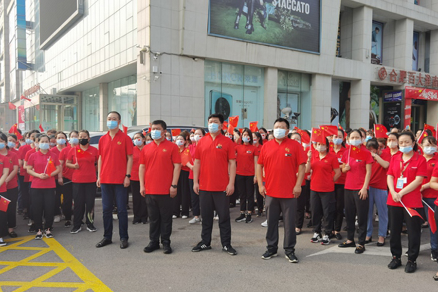 为进一步激发员工的爱国爱企热情,践行社会主义核心价值观,10月1日,淮南百大在公司门前广场举行了隆重的升国旗仪式。