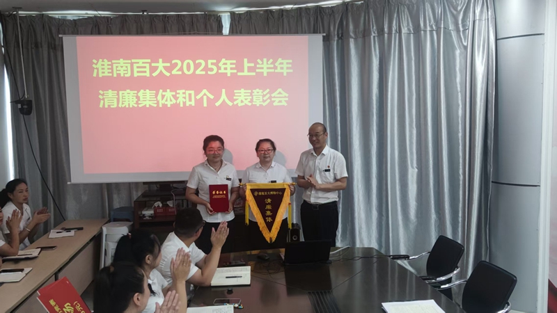 2025 年,淮南百大积极响应集团公司“清廉百大”建设部署,将清廉集体创建作为推进全面从严治党的重要举措,以“树立标杆、激励先进”为导向,统筹推进清廉建设和经营激励工作。9 月 2 日下午,公司在三楼会议室举行 2025 年上半年清廉建设表彰暨“全城向百”劳动竞赛表彰仪式。此次双维度表彰活动,不仅为先进集体与个人颁发荣誉、分享优秀经验,更有效凝聚了全员崇廉尚廉的思想共识,激发了实干争先的奋斗热情,
