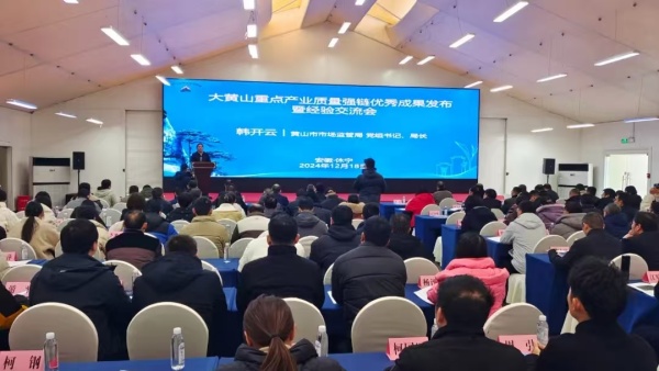 2024年12月18日,大黄山重点产业质量强链优秀成果发布暨经验交流会在黄山市休宁县召开。会议由黄山市市场监管局、池州市市场监管局、安庆市市场监管局、宣城市市场监管局、大黄山首席质量官联盟、黄山市质量品牌促进会共同主办。会上,黄山百大获评首届“大黄山服务质量标杆单位”荣誉称号;黄山百大董事长、总经理沈萍同志获评“2024年大黄山首席质量官质量变革创新实践10佳案例”。
