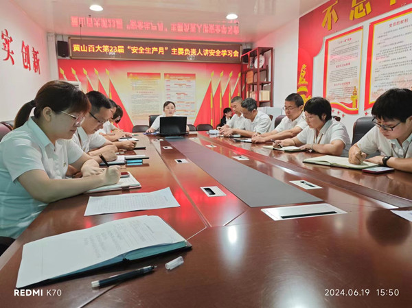 为切实落实黄山百大“安全生产月”活动实施方案,2024年6月19日下午,黄山百大安委会组织召开安全生产专题扩大会议。会上,开展了安全生产月“书记带头讲安全”活动。