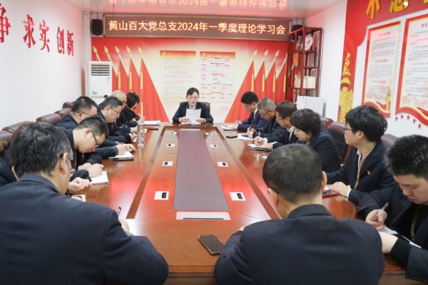 3月22日上午,黄山百大党总支在公司七楼会议室召开2024年一季度理论学习会。会议由党总支书记沈萍主持,党总支班子成员、各部门及合家福负责人参加学习。