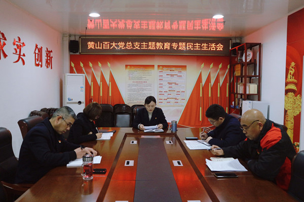 按照集团党委部署和相关文件要求,1月19日下午,黄山百大党总支召开学习贯彻习近平新时代中国特色社会主义思想主题教育专题民主生活会,5名党总支班子成员参加会议。