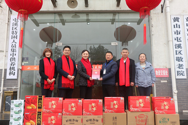 2024年2月2日,正值北方小年夜,黄山百大党总支书记沈萍同志率公司领导班子成员一行走进黄山市屯溪区福利院,为老人和孩子送上寒冬的温暖和新春的祝福。这已经是黄山百大连续第6年,在小年这一天来看望老人和孩子们了。