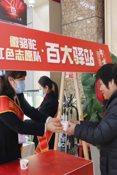1月18日腊八节。上午10点,黄山百大党总支“徽骆驼”服务站在门厅火热启幕。一谷一粟,八宝食材,汇聚成热气腾腾的腊八粥,香气中氤氲新年的期待,进店顾客纷纷驻足品尝。