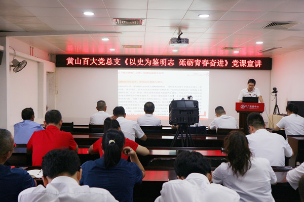 今年是中国人民抗日战争暨世界反法西斯战争胜利80 周年。为传承和弘扬伟大抗战精神,共同汲取其中生生不息的奋进力量,10月16日下午,黄山百大党总支在公司六楼会议室开展弘扬伟大抗战精神党课宣讲及红色影片观影活动,全体党员、品经及以上管理人员参加活动。