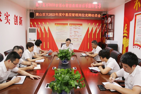 根据集团公司统一部署,以及党管干部原则,黄山百大党总支于7月8日下午召开2023年度中基层管理岗位竞聘上岗动员会。黄山百大党总支及领导班、全体中基层管理人员参会。
